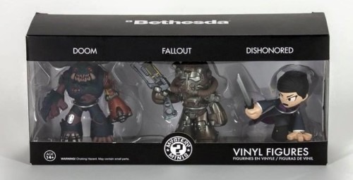 Set de figuras de Bethesda, edicion limitada de la expo E3 de 2015. Miden aproximadamente 5cm cada una. Caja sellada. Personajes de Doom, Fallout y Dishonored.